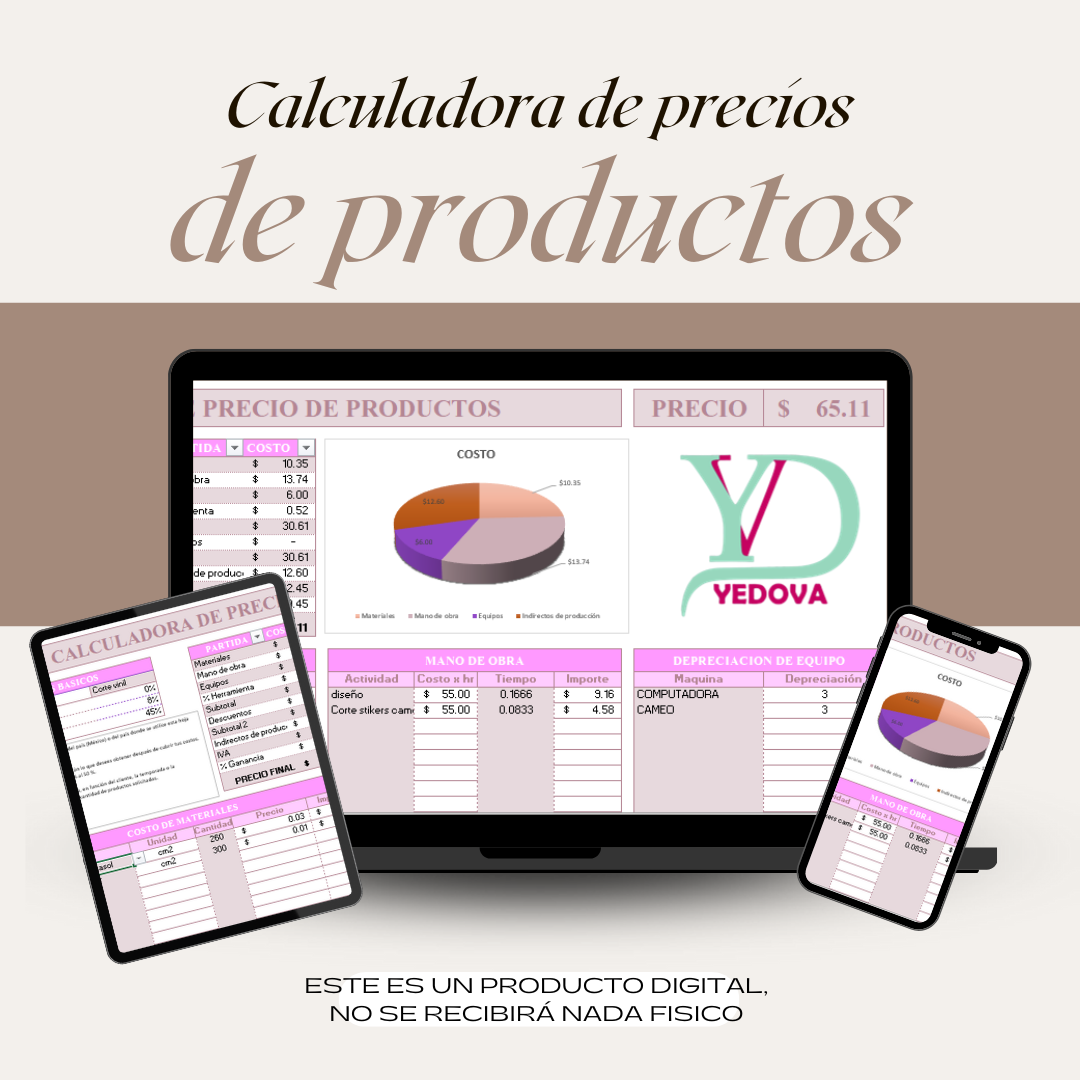 La Calculadora de Precios YEDOVA es una herramienta digital diseñada para emprendedores que quieren dejar de cobrar “al tanteo” y empezar a tomar decisiones con números reales.